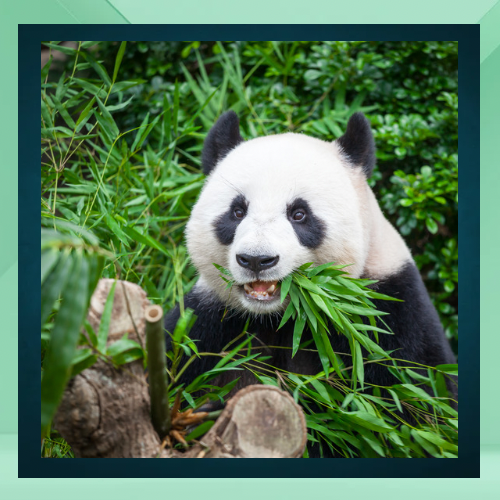 Pandas have characteristics that suit their bamboo based diet despite belonging to the bear family group they have adapted over time to efficiently consume bamboo plants by possessing wrist bones that function like a thumb enabling them to grip stalks along, with powerful jaw muscles and specialized teeth, for breaking down sturdy bamboo material.