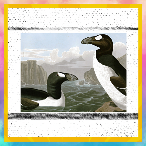 Interesting Fact: The Great Auk was known for its striking black and white plumage and was a strong swimmer, using its wings to propel itself underwater.