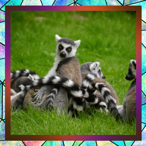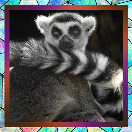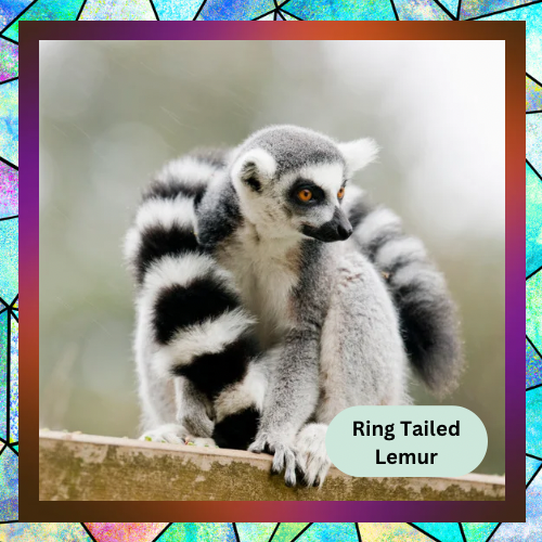 The ring tailed lemur has a tail that’s longer than its bodys length and is recognized for its black and white striped pattern tail used for communication purposes when they travel together in groups by lifting their tails like flags to maintain coordination among themselves.