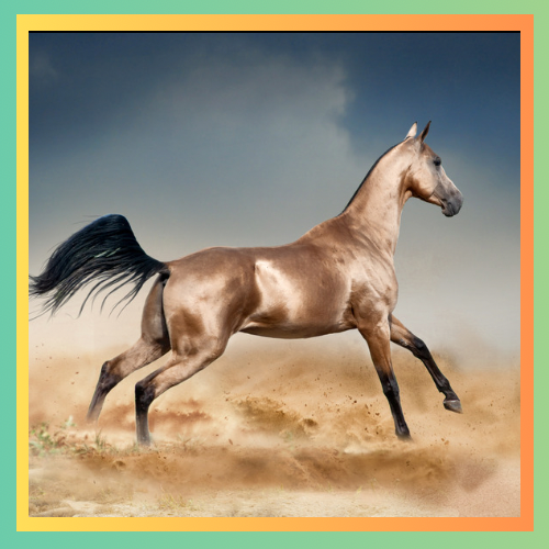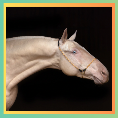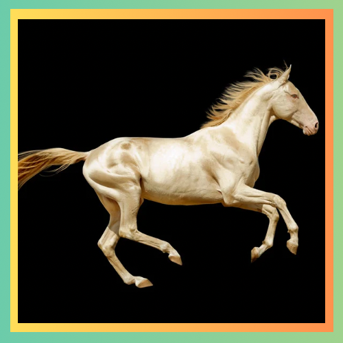 Unmistakable, for its coat that gleams in shades of gold, bronze or silver the Akhal Teke owes its shimmer to the hairs quality. Its color palette ranges from palomino and buckskin to bay, gray hues.