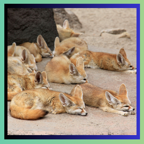 Known for their nature fennec foxes often form groups known as “skulks” or “leashes” comprising, up to ten individuals. In the wild, fennec foxes usually form knit family units consisting of a breeding pair and their young. These foxes communicate through means, like vocalizations, scent marking and playful interactions.