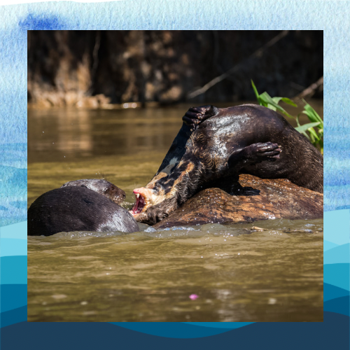• Territorial Behavior: Giant river otters are highly territorial and will aggressively defend their home range from other predators, including jaguars and caimans. Their strong group dynamics and vocal communications help them maintain dominance in their territory.