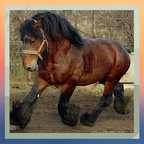 These horses are built for work, with their muscular bodies that boast a wide chest and powerful hindquarters supported by thick legs capable of carrying their weight effortlessly across challenging landscapes.